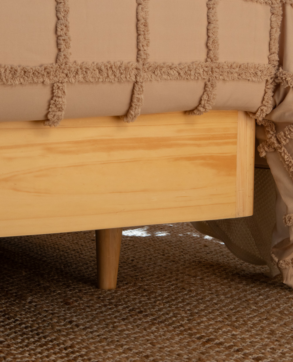 Trabajamos con pino reforestado proveniente de cultivos sostenibles, donde cada árbol talado da paso a uno nuevo para mantener vivo el ciclo natural. Elegimos esta madera por su resistencia, durabilidad y acabados. Porque la madera no es solo un recurso biodegradable y reciclable, es también un símbolo de nuestro compromiso con la sostenibilidad y el respeto por el medio ambiente.