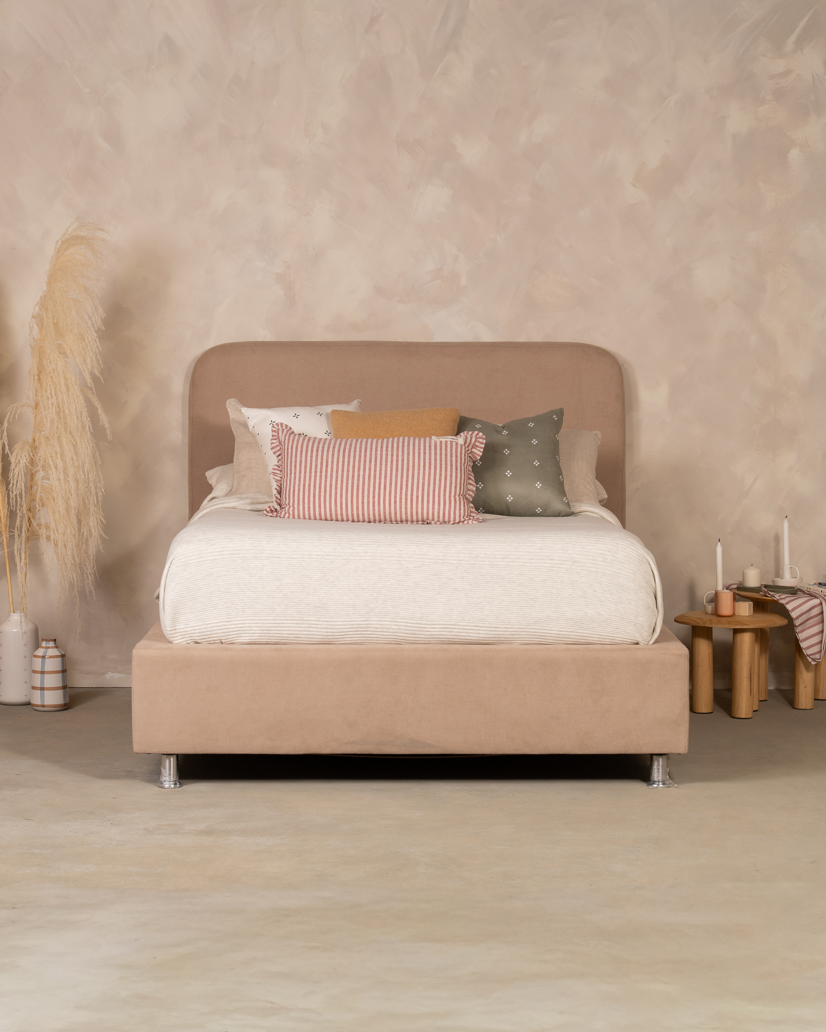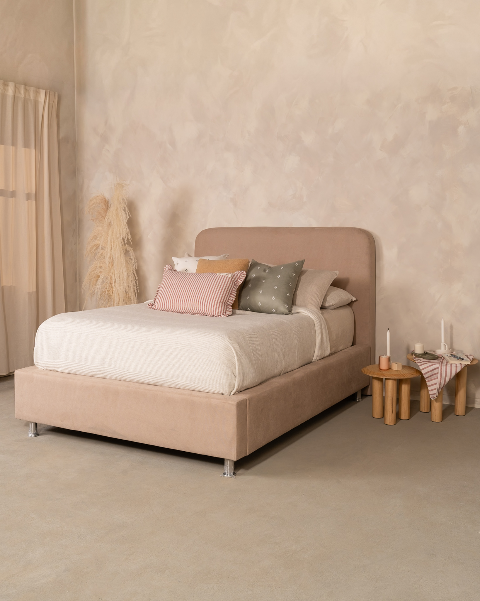 El tapizado en textil aterciopelado de textura suave y apariencia envolvente incorpora tecnología pet friendly, lo que facilita su limpieza y garantiza una excelente resistencia al uso diario.