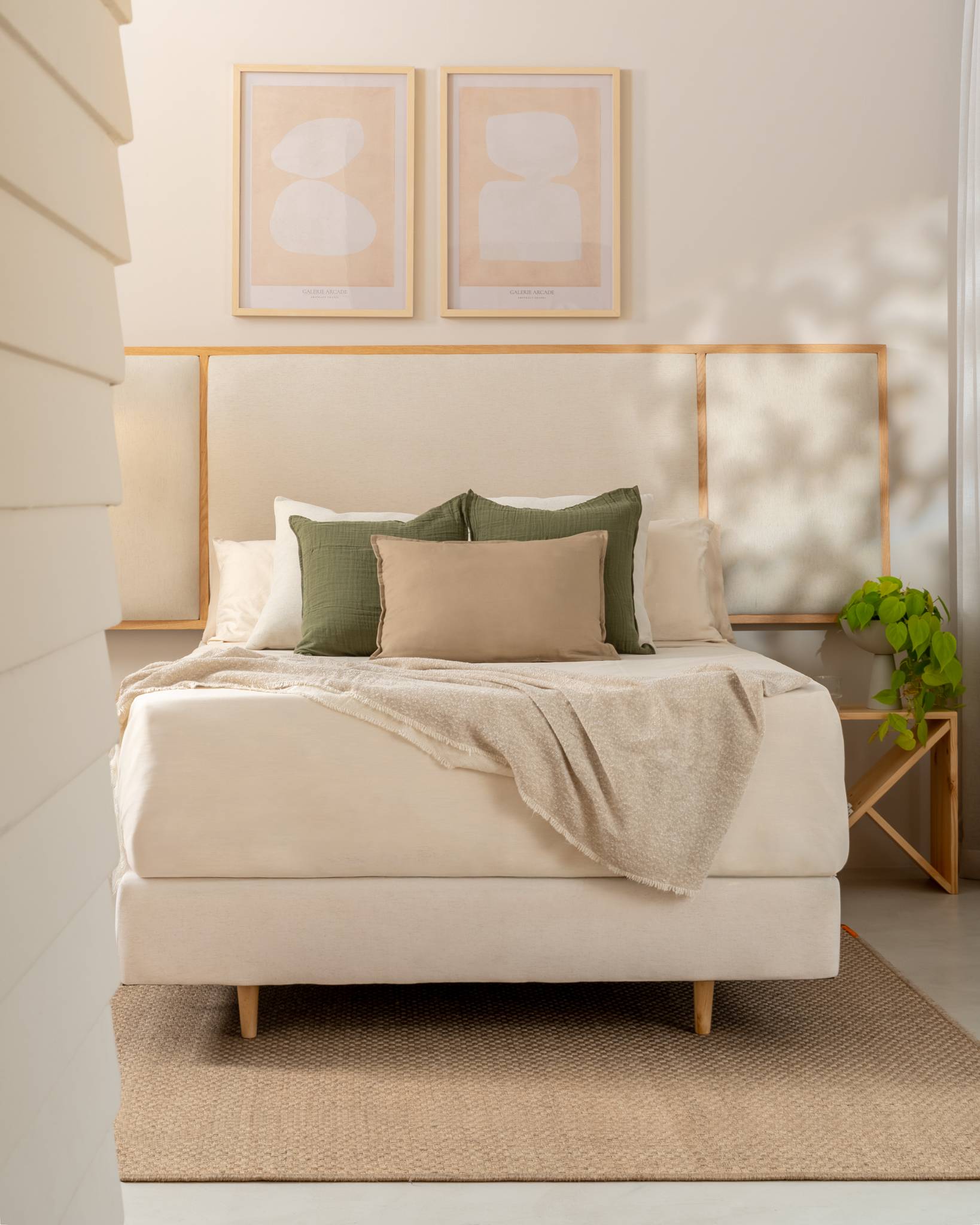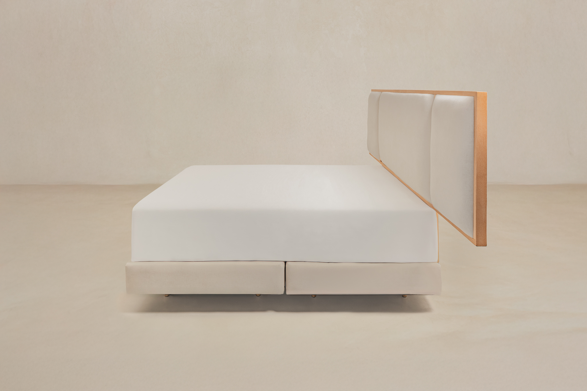 Los soportes cónicos de 15 cm de altura, en el mismo tono de la base, aportan un toque moderno y elevan el diseño, facilitando la limpieza y la ventilación del espacio de descanso.